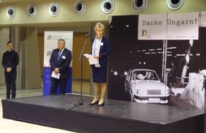 I.E. Lieselore Cyrus, Botschafterin der Bundesrepublik Deutschland, bedankt sich bei den Ungarn für die Entlassung der DDR-Bürger über Österreich nach West-Deutschland vor 25 Jahren.